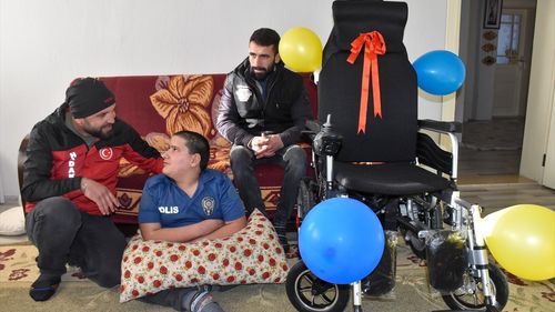 Van'da bir dernek, 12 yaşındaki bedensel engelli Yusuf Erban'a akülü tekerlekli sandalye ve eğitim malzemeleri hediye etti.
