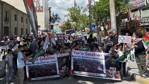 Van'da çocuklar, Gazze'deki saldırıları protesto etmek amacıyla yürüyüş yaptı. İslami Dayanışma Platformu öncülüğünde gerçekleşti.