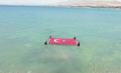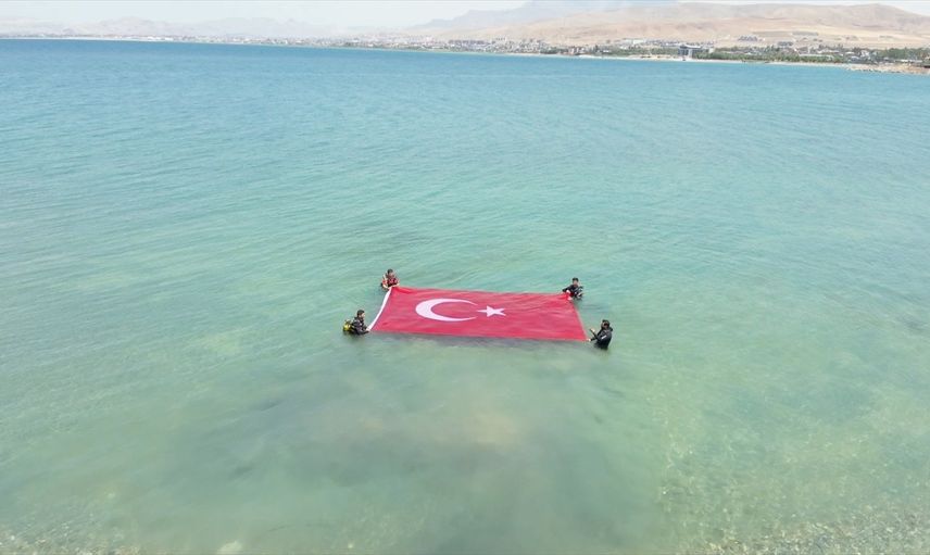 Van'da, 1 Temmuz Denizcilik ve Kabotaj Bayramı dolayısıyla dalgıçlar, Van Gölü'nde Türk bayrağı açarak anlam dolu bir kutlama gerçekleştirdi.