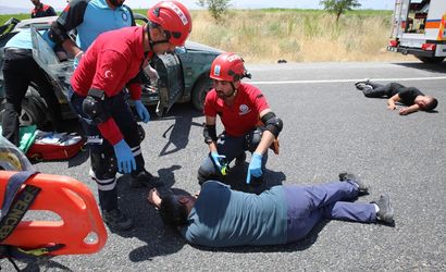 Yolun trafiğe kapatıldığı tatbikatta, ekipler senaryo gereği yaralıları araçtan kurtarıp hastaneye sevk etti. Gerçek senaryoya uygun olarak gerçekleştirilen tatbikat, izleyenlere etkileyici anlar sundu.