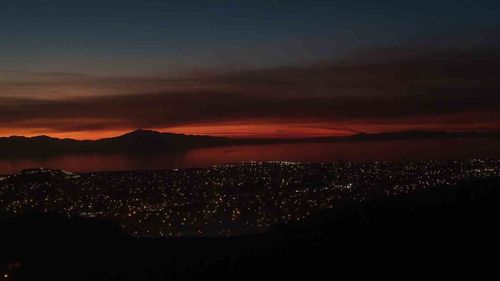 Van'da akşam gün batımı gökyüzünü kızıl tonlara boyadı; Van Gölü çevresi ve yüksek noktalardan izlenen kartpostallık manzaralar vatandaşların ilgisini çekti.