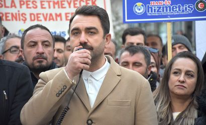 HAK-İŞ İl Başkanı Fatih Akdeniz de işçilerin mağduriyeti giderilinceye kadar eylemlerine devam edeceklerinin altını çizdi.