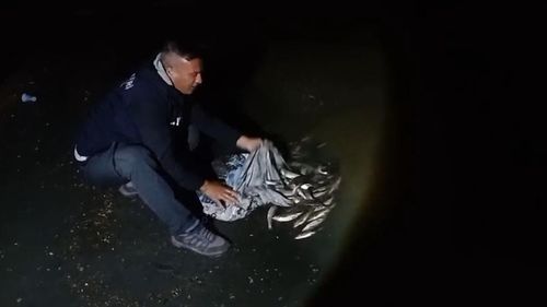 Van Gölü'nde kaçak avlanan 50 kilogram inci kefali suya geri bırakıldı, 200 metre ağ ele geçirildi.
