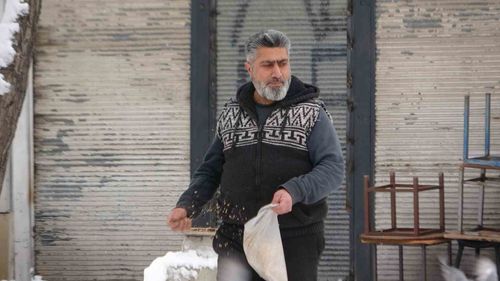 Van'da Ahmed-i Hani Kültür Parkı çevresinde çatı katlarında yaşayan binlerce güvercin, kar sonrası atılan yemlere akın ederek toplu beslenme görüntüleri oluşturdu.