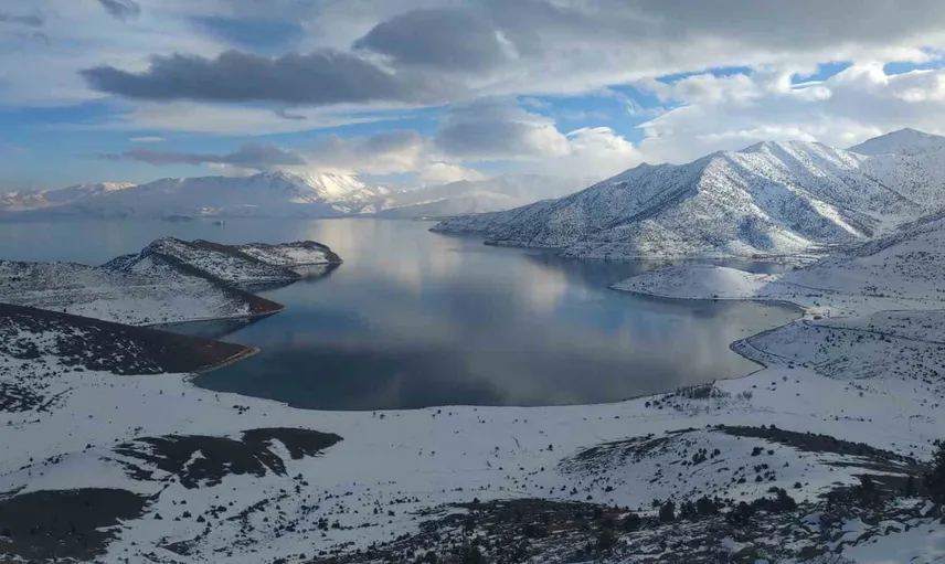Van'da etkili olan yoğun kar yağışı, kentin doğal dokusunu beyaza bürüdü. Dağlar ve kıyı şeritleri karla kaplanırken, Van Gölü'nün masmavi suları bu beyaz örtüyle çarpıcı bir kontrast oluşturdu.