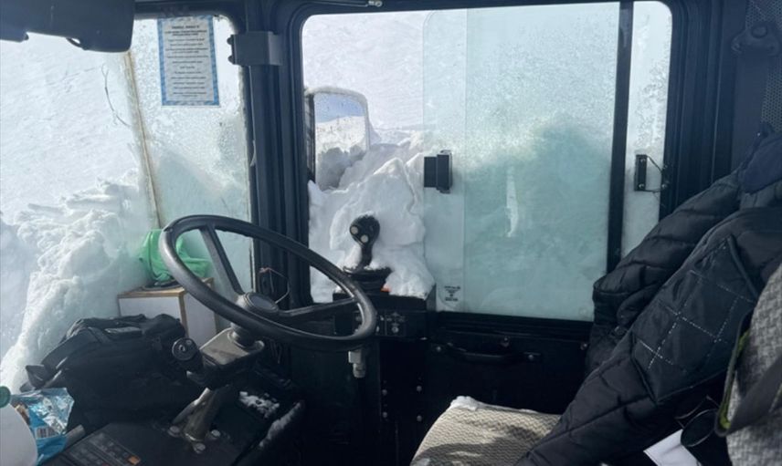 Van'ın Başkale ilçesinde karla mücadele çalışmaları sırasında iş makinesinin üzerine çığ düştü.