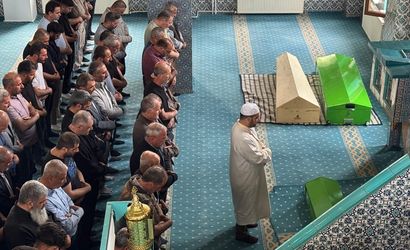 Erzurum'un Karayazı ilçesinde, otomobilin dereye yuvarlandığı kazada hayatını kaybeden aynı aileden 3 kişi, memleketleri Van'da, İskele Merkez Camisi'nde kılınan cenaze namazının ardından Seyrantepe Mezarlığı'nda toprağa verildi.