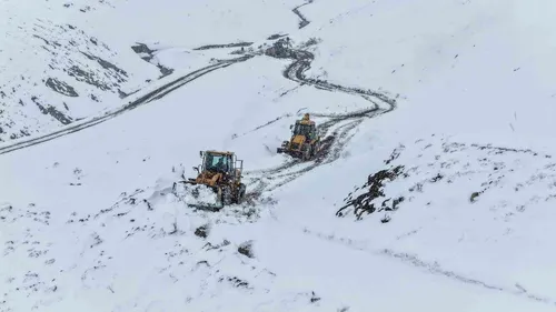 Van'da Nisan ayında etkili kar yağışı nedeniyle kapanan yolların açılması için belediye ekipleri, özellikle Gürpınar'ın Norduz bölgesinde, 18 mahalle ve 36 mezra yolunda çalışıyor.