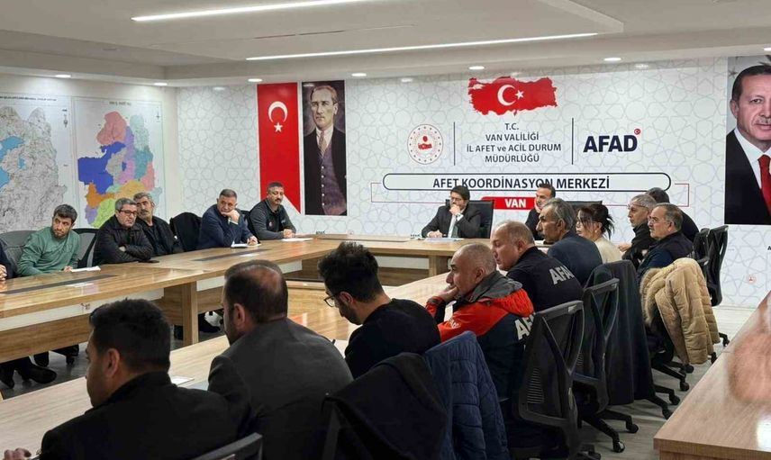 Van AFAD İl Müdürlüğü Afet Koordinasyon Merkezi'nde düzenlenen toplantı, Vali Yardımcısı Önder Koç başkanlığında gerçekleştirildi. Toplantıya AFAD İl Müdürlüğü, İl Emniyet Müdürlüğü, İl Jandarma Komutanlığı, Karayolları, İl Sağlık Müdürlüğü, Aile ve Sosyal Hizmetler İl Müdürlüğü, Kızılay, Tarım ve Orman İl Müdürlüğü, DSİ 17. Bölge Müdürlüğü ve ilgili diğer kurumların temsilcileri katıldı.
