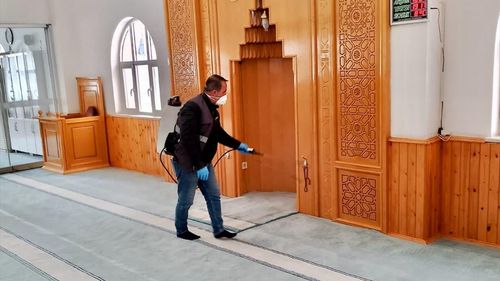Van Büyükşehir Belediyesi, ramazan öncesi camilerde temizlik ve dezenfeksiyon çalışmaları gerçekleştirdi.