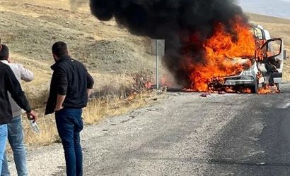 Van'da seyir halindeki yolcu minibüsü Kurubaş'ta alev aldı