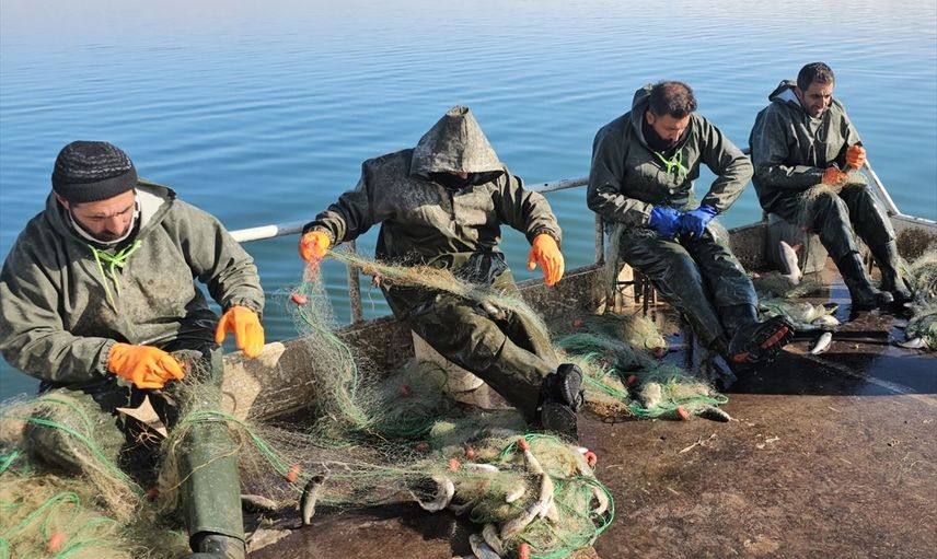Van'ın Erçek Gölü'nde balıkçılıkla geçimini sağlayan vatandaşlar, soğuk hava koşullarına rağmen gölde balık avlamaya devam ediyor. Çetin kış şartlarının yaşandığı bu mevsimde, balıkçılar sabah erken saatlerde tekneleriyle göle açılarak, bir gün önce serdikleri ağları topluyor.