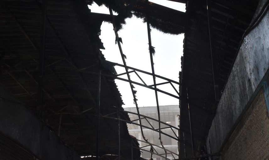 Van'ın İpekyolu ilçesinde dün çıkan yangın sonucu birçok dükkanın kullanılamaz hale geldiği Mısır Çarşısı'nda ekiplerin incelemesi devam ediyor.