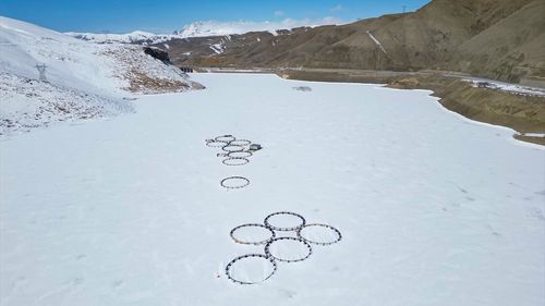 Van'ın Gürpınar ilçesindeki Zernek Barajı, dondurucu soğuklar nedeniyle tamamen buzla kaplandı.