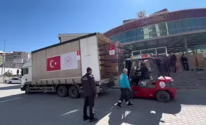 Son iki gündür Türkiye'nin çeşitli illerindeki hastane ve sağlık tesislerinden temin edilen tıbbi malzemeler Van'da toplandı. Gerekli kontroller ve yükleme işlemleri tamamlandıktan sonra tırlar, öğleden sonra ilimizden yola çıktı. Bölgedeki mevcut durum nedeniyle yardım gönderimine ilişkin koordinasyon yoğun bir çalışma çerçevesinde yürütüldü.
