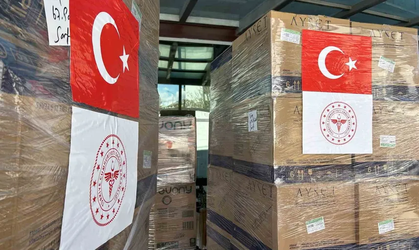 Sağlık Bakanı Kemal Memişoğlu talimatıyla son iki gündür Türkiye'nin çeşitli illerindeki hastane ve sağlık tesislerinden temin edilen ilaç, tıbbi sarf ve tıbbi cihazlar Van'da toplandı. Gerekli kontroller ve yükleme işlemleri tamamlanan tırlar, bugün öğleden sonra Van'dan uğurlandı.
