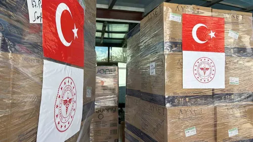 Van'dan, Sağlık Bakanı Kemal Memişoğlu'nun talimatıyla toplanan 3 tırlık tıbbi yardım, Gürbulak Sınır Kapısı üzerinden İran'daki ihtiyaç sahiplerine ulaştırılmak üzere yola çıktı.