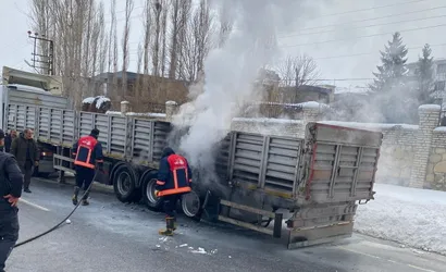 Van'ın Edremit ilçesinde seyir halindeki bir tırın lastikleri alev aldı. Olay, Edremit Su Sporları binası yanında meydana geldi.