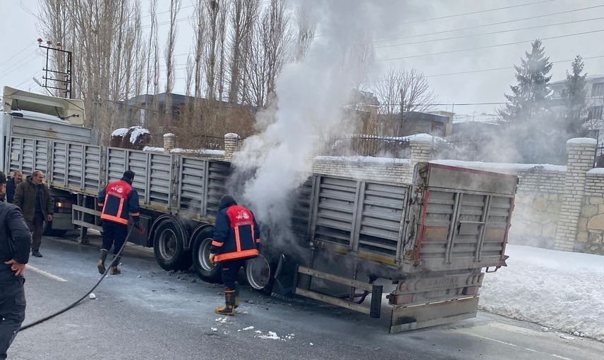 Van Edremit'te Tırın Balatalarının Aşırı Isınması Sonucu Lastikleri Yandı
