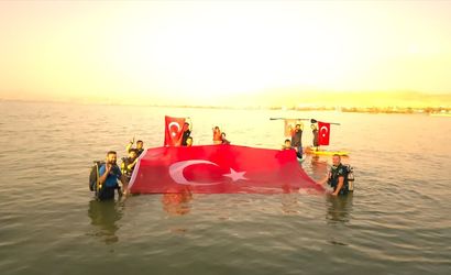 Van'ın Edremit ilçesinde faaliyet gösteren Dive Ank Dalış Okulu sporcu ve öğrencileri, 30 Ağustos Zafer Bayramı'nın 103. yıl dönümünü dolayısıyla Van Gölü'nde Türk Bayrağı açtı.