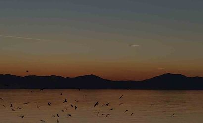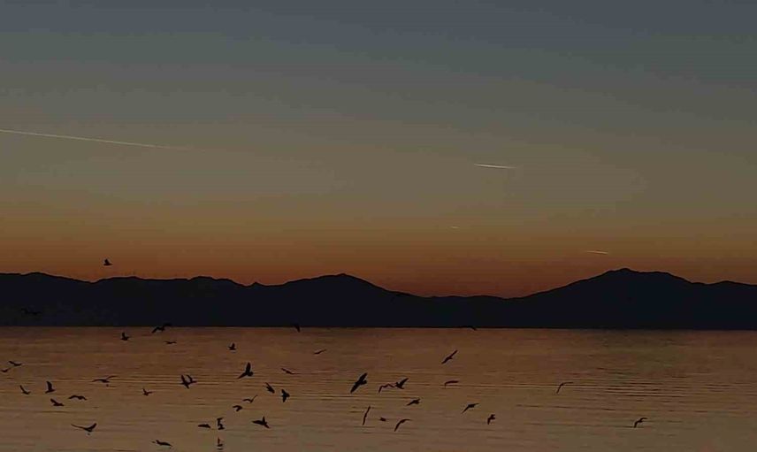 VAN GÖLÜ SEMALARINDA AKŞAM SAATLERİNDE ETKİLEYİCİ BİR DOĞA MANZARASI YAŞANDI. GÖL ÜZERİNDE TOPLANAN KUŞ SÜRÜSÜ, DAİRESEL HAREKETLERLE UZUN SÜRE HAVADA SÜZÜLEREK ADETA GÖRSEL BİR ŞÖLEN SUNDU