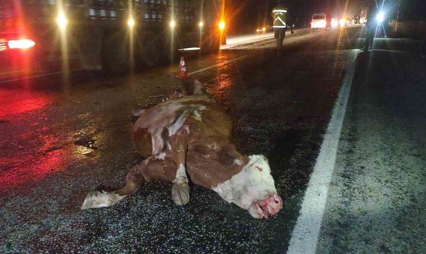 Jandarma ekipleri kaza yerinde güvenlik önlemleri aldı; telef olan inek ve kazaya karışan araçlar yoldan kaldırıldı. Karayolunda bir süre tek şeritten sağlanan trafik, ekiplerin çalışmasının ardından normale döndü.