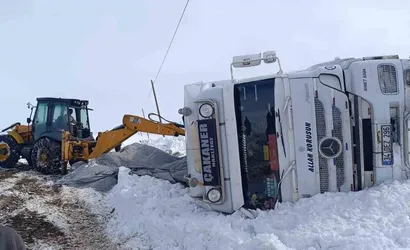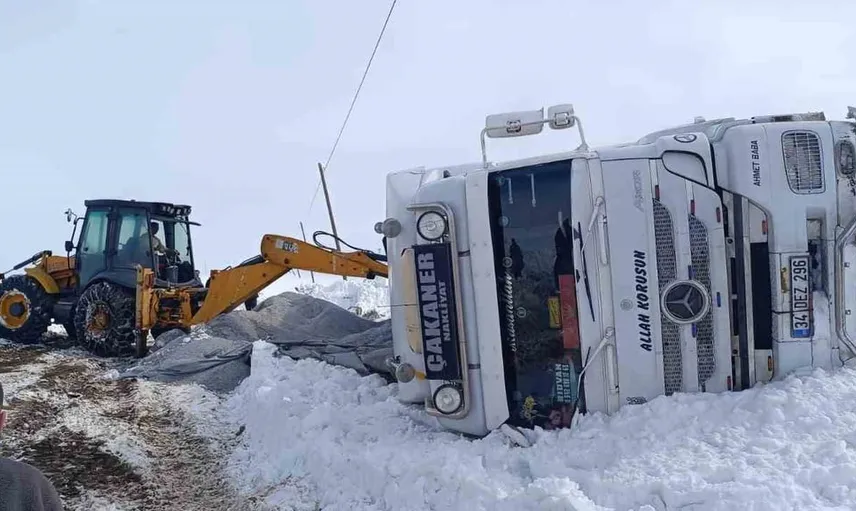 Alınan bilgilere göre, sürücüsünün ismi öğrenilemeyen 34 DEZ 296 plakalı tır, yol yüzeyindeki görünmeyen buz tabakası nedeniyle savrularak devrildi. Kazada can kaybı ya da yaralanma olmadığı, araçta ise maddi hasar meydana geldiği bildirildi.