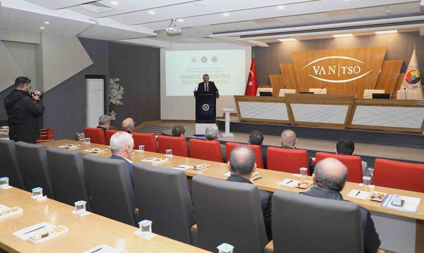 Van Ticaret ve Sanayi Odası (Van TSO) Tahkim ve Arabuluculuk Merkezi tarafından düzenlenen Hakemler Eğitiminin tamamlanmasının ardından katılımcılara sertifikaları Van TSO M. Rifat Hisarcıklıoğlu Salonu’nda takdim edildi.