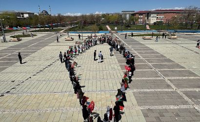 Van Yüzüncü Yıl Üniversitesi'ndeki (Van YYÜ) akademisyenler ve öğrenciler, İsrail'in Gazze'ye yönelik saldırılarını protesto etmek için Filistin haritası koreografisi oluşturdu. Üniversitede organize edilen "Filistin İçin El Ele Yürüyüşü" programı kapsamında Edebiyat Fakültesi önünde toplanan akademisyenler ve öğrenciler, Türk ve Filistin bayraklarıyla merkez yemekhaneye kadar yürüdü. Grup, burada Filistin haritası koreografisi oluşturdu.