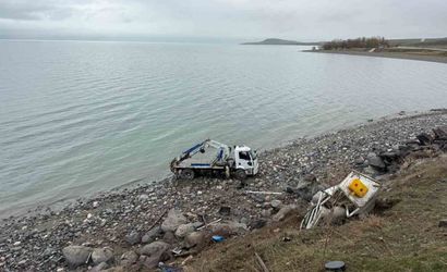 Van Su ve Kanalizasyon İdaresi (VASKİ) Genel Müdürlüğü'ne ait içme suyu ekibini taşıyan kurtarıcı kamyon, Van-Erciş kara yolunda seyir halindeyken sürücüsünün direksiyon hakimiyetini kaybetmesi sonucu yol kenarındaki bariyerleri aşarak Van Gölü'ne düştü.