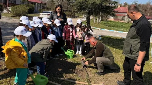 Samsun Vezirköprü'de Cumhuriyet Anaokulu öğrencileri, Vezirköprü Orman İşletme Müdürlüğü'nü ziyaret ederek öğretmenleri ve yetkililerle birlikte fidan dikti.