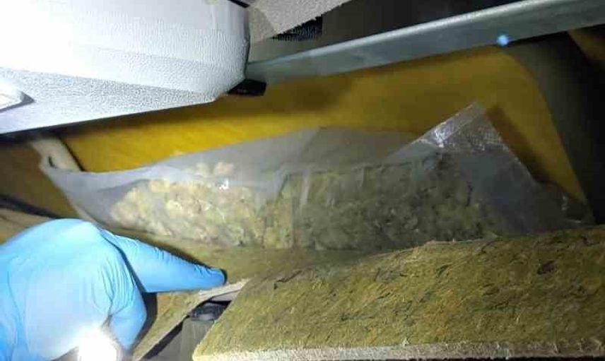 Kabin içinde yapılan fiziki aramada şüpheli bölmeler tespit edildi. Yapılan detaylı incelemede, kabin içerisindeki doğal boşluklara gizlenmiş şekilde 11 paket halinde toplam 5 kilo 763 gram esrar ve 1 kilo 74 gram kokain ele geçirildi.
