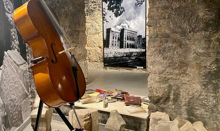Bosna Hersek'teki savaşta Sırp birliklerinin bombardımanıyla 32 yıl önce yakılan Vjecnica Kütüphanesi'nde yangın anı ve sonrasına ait fotoğrafların yer aldığı sergi açıldı.