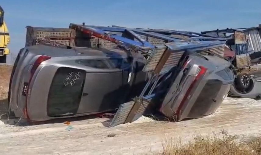 Şanlıurfa’nın Viranşehir ilçesinde meydana gelen kazada, sıfır otomobillerin yüklü olduğu bir tırın devrilmesi sonucu araçlar ciddi şekilde hasar aldı.