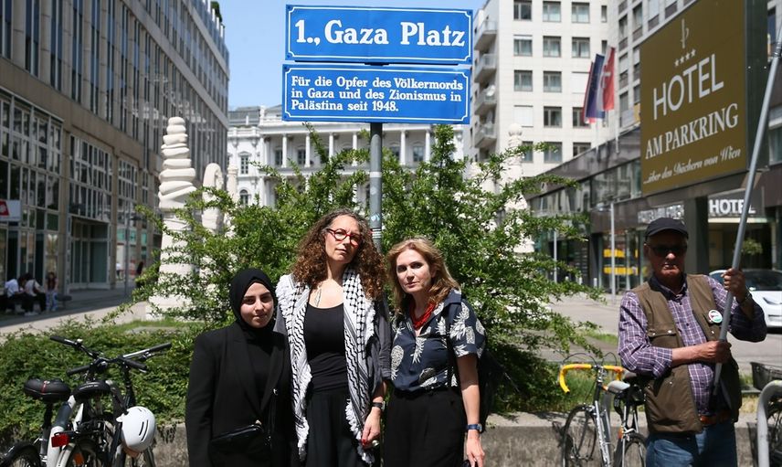Avusturya’nın başkenti Viyana’da Filistin destekçileri, Gazze’de süren soykırıma dikkati çekmek için siyonizmin kurucusu Theodor Herzl’in adının verildiği meydana ait tabelanın üzerine "Gazze Meydanı" yazısı yapıştırarak sembolik bir şekilde yerin adını değiştirdi.