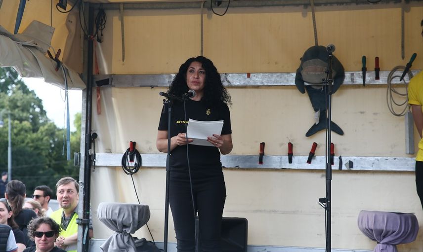 Protesto sırasında konuşan Yahudi aktivist Ruthie, Holokost ve Yahudilerin maruz kaldığı zulümler üzerine yıllarca araştırma yaptığını belirtti. Ruthie, "Şimdi, neredeyse 2 yıldır Gazze'de olanları dehşetle izliyoruz" dedi.