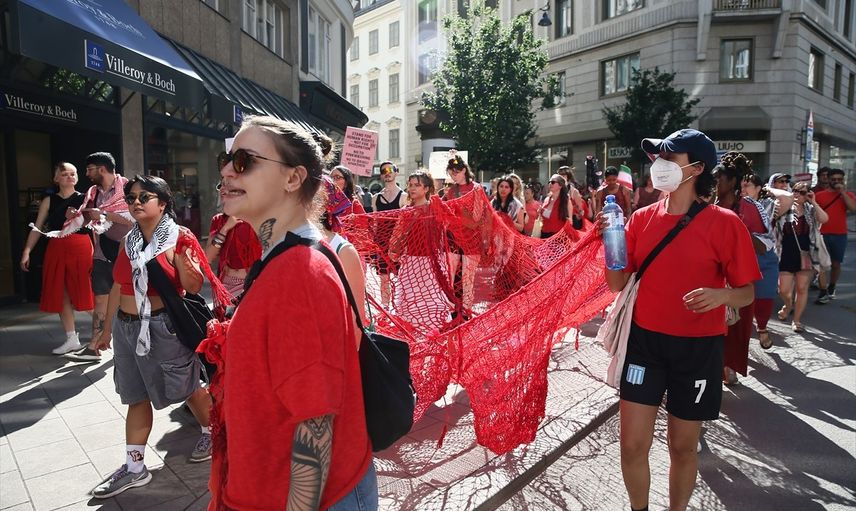 Avusturya'nın başkenti Viyana'da, yüzlerce Filistin destekçisi bir araya gelerek, İsrail'in Gazze'de sürdürdüğü saldırılara ve İran'a yönelik eylemlerine karşı gösteri düzenledi.