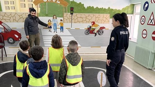 Kırklareli Vize'de anaokulu öğrencilerine, Toplum Destekli Polislik kapsamında Vize İlçe Emniyet Müdürlüğü Trafik Büro Amirliği tarafından uygulamalı trafik eğitimi verildi.