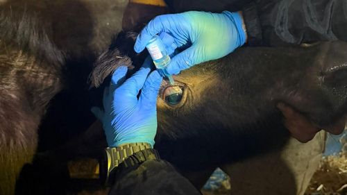 Kırklareli Vize'de İlçe Tarım ve Orman Müdürlüğü ekipleri, 3 ayını doldurmuş büyükbaşlara brucella aşısı uyguluyor; veterinerler korunma yöntemleri konusunda üreticileri bilgilendiriyor.