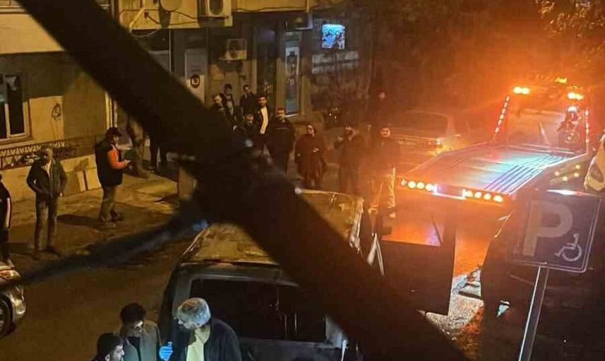 Fevziçakmak Mahallesi'nde park edilmeye çalışılan minibüs alev aldı