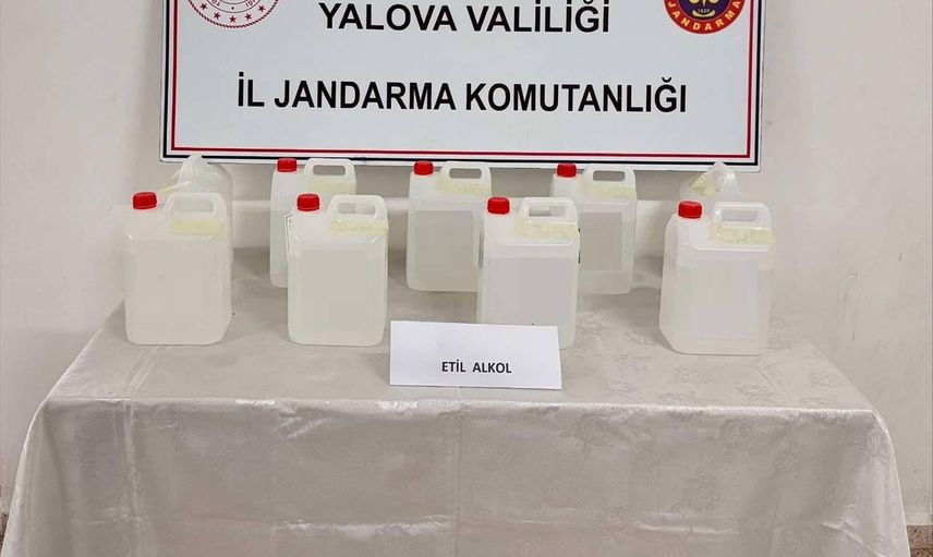 Yalova'nın Çınarcık ilçesinde, İstanbul'dan yüzey temizleyici bidonlarında kargo aracılığıyla gönderilen 45 litre etil alkol ele geçirildi.