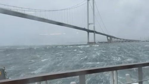 Yalova'dan kalkan arabalı feribot fırtına nedeniyle Eskihisar'a yanaşamayıp güvenli bölgede bekliyor
