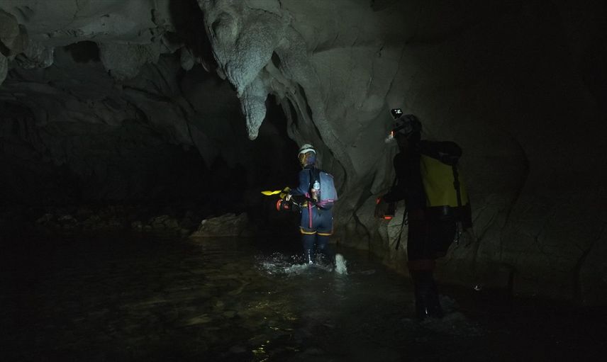 Yusuf İşsever, Ayvaini Mağarası’nın yapısının dikey başlayıp ardından yatay bir düzleme geçtiğini ifade etti. 15 metrelik dikey iniş sonrası 15 derece sıcaklıkta ilerlediklerini ve sürekli akan soğuk suyu gözlemlediklerini belirtti.