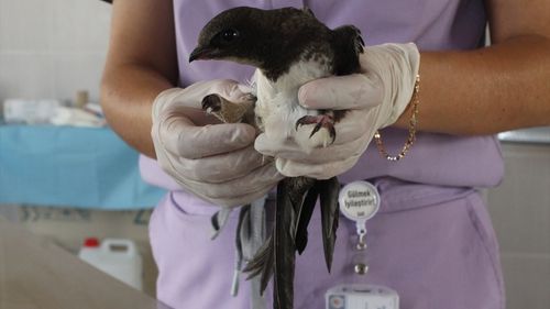 Samsun'un Bafra ilçesinde yaralı bulunan ak karınlı ebabil tedavi edilmek üzere Kızılırmak Deltası'ndaki klinikte bakım altında.
