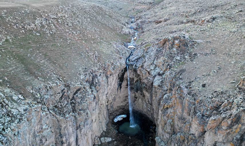 Van'ın Muradiye ilçesinde yaz döneminde kuruyan Yaşar Kemal Şelalesi, karların erimesiyle yeniden akmaya başladı.