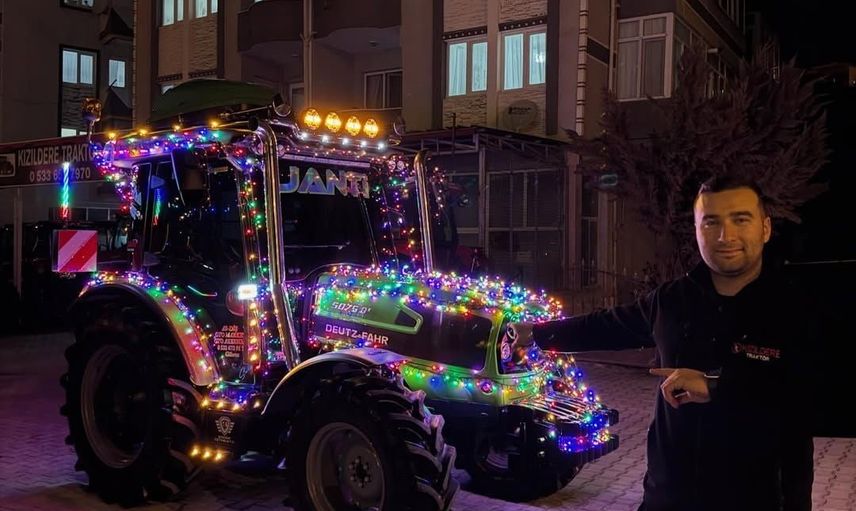 Muğla'nın Yatağan ilçesinde, yeni yıl kutlamaları kapsamında modifiye meraklıları tarafından simge haline gelmiş bir traktör 100 metre uzunluğundaki LED ışıklarla süslenerek dikkat çekti. Araç, güvenlik önlemleri alınarak ve trafik kurallarına özen gösterilerek sergilendi.
