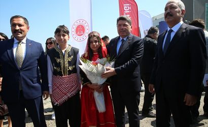 Adalet Bakanı Yılmaz Tunç, Hatay'da Erzin Adalet Sarayı Temel Atma Töreni'ne katıldı. Burada yöresel kıyafetli çocuklar, Bakan Tunç'a çiçek verdi.