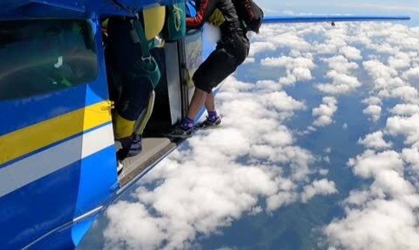 Yedek paraşütü uçağın kanadına takılan sporcu 4 bin 600 metre yükseklikte asılı kaldı