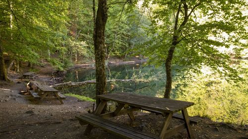 Bolu'daki Yedigöller Milli Parkı, sonbaharda renk cümbüşüyle ziyaretçilere huzurlu yürüyüş, fotoğraf ve piknik imkânı sunuyor.