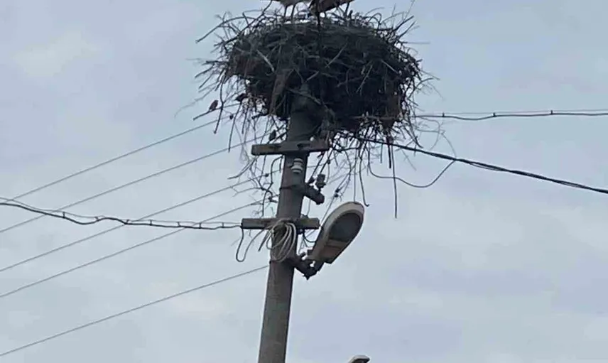 Çifte leyleklerin aydınlatma direğindeki yuvası, hem mahalle yaşamına hem de mevsimsel döngüye dair gözlemler için dikkat çeken bir örnek oluşturuyor.
